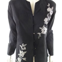 Joyce Ridings Storlek 38 Svart Knäppt Tunika Blus Lin 100% Långärmad