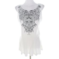TRICOT Tunikablus Ränder Vit L Ärmlös Lin 100% Rund urringning