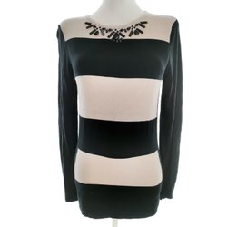 OLSEN Stickad tunika Ränder Pärlor Svart 40 Lång ärm Bomull Båtringning