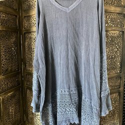 Blå tunika med lång ärm och volang nedtill. Tunikan har en ledig passform och är perfekt för både vardag och fest. Ca 124 cm bröstmått. Köparen står för frakten