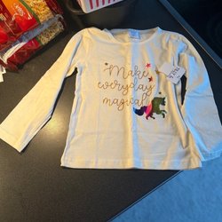 Ett sött set bestående av en långärmad tröja med vita och persikofärgade ränder och en röd kjol med Hello Kitty-motiv. Troja storlek 98/104. Kolla gärna alla mina annonser så sam fraktar jag
