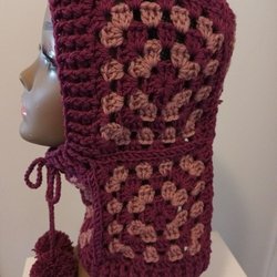 En handgjord, krämvit halskrage med huva. Den har en dekorativ brosch i form av en svart katt med gulddetaljer och strass virkad av mig I tanja garnet