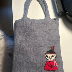 Röd och vit randig tygväska med handtag. Väskan har en etikett från Polarn O. Pyret.Storlek 30*26cm