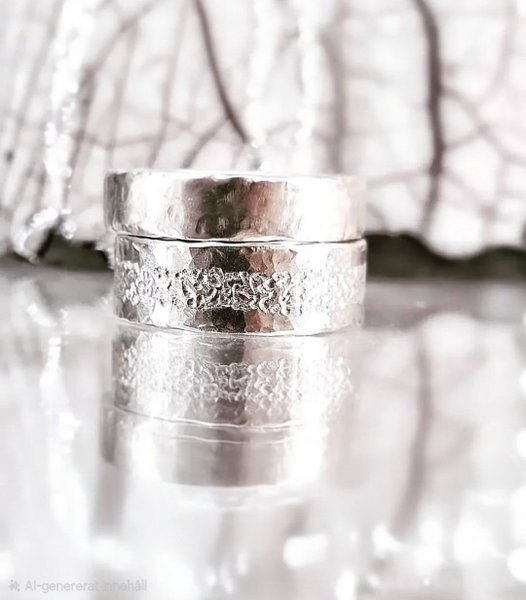 Två handgjorda silverringar med unik textur. Perfekt som förlovningringar/ vigselringar eller som en stilfull accessoar.