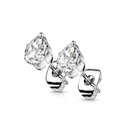 1par Droppformade Studs Örhängen i IP 316L Platina pläterad Kirurgiskt stål med kloinfattade 4 mm Kristall vit Cubik Zirkon.