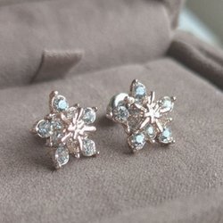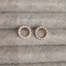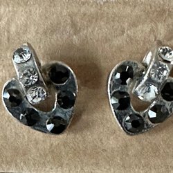 Ett par studsörhängen med stiftörhänge. Metallen är silverfärgad och örhängena är dekorerade med små, klara strasstenar som ger en glittrande effekt.