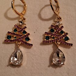 Ett par örhängen med jultema, röda och gröna pärlor och en stjärna.