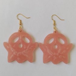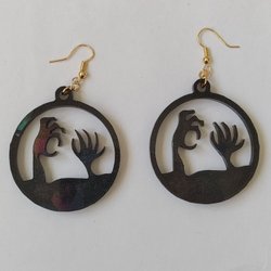 Örhängen med decoupage på träplattor med resin över, jag vet tyvärr inte om stiften är nickelfria ?? resinet har "runnit lite snett", se bilder.