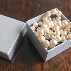 Ett elegant pärlhalsband. Halsbandet väger 155 gram och är cirka 140 cm långt.