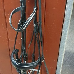 Två nosgrimmor, ett nackstycke, sidostycken och en snokrem i svart färg. Ej använda eller putsade.