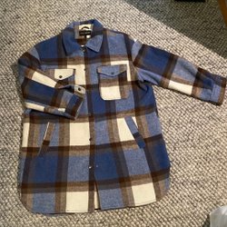 Brun jacka med dragkedja framtill och en liten logotyp på bröstet. Jackan har även fickor med dragkedja och en hög krage.