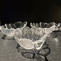 Den är tillverkad av kristallglas och kan användas för dekoration eller tex som serveringsskålar.