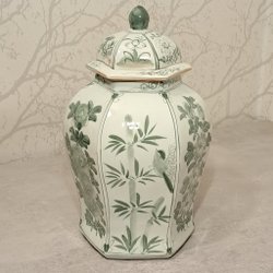Vacker kinesisk lockurna/ingefärskrus. Prydd med detaljerade handmålade motiv av människor och blommor. Stämpel finns på botten.
