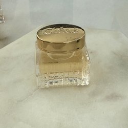 En flaska Chloé parfym. Perfekt för den som älskar blommiga och feminina dofter. Flaskan har en elegant design med en fin rosett runt halsen. 20 ml från början.