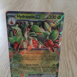 Säljer ett Pokémonkort av Hydrapple ex. Kortet har förmågan Ripening Charge och attacken Syrup Storm.
