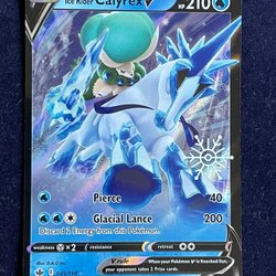 Ett sällsynt Pokémonkort med Ice Rider Calyrex V. Perfekt för samlare och spelare!