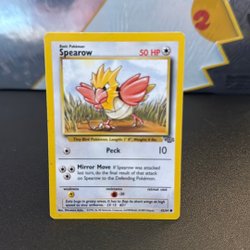 Säljer ett Pokémonkort av Spearow. Kortet är från 1999 och har nummer 62/64. Spearow är en Basic Pokémon med 50 HP och attacker som Peck och Mirror Move.