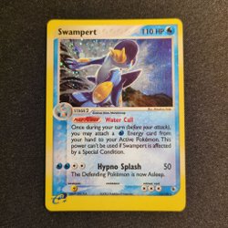 Swampert Pokémonkort med Poké-Power Water Call og angrebet Hypno Splash. Kortet er Stage 2 og udvikler sig fra Marshtomp.