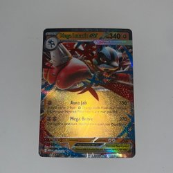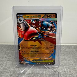 Säljer ett Mega Lucario EX Pokémonkort. Kortet har attackerna Aura Jab och Mega Brave.