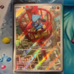 Säljer ett Pokémonkort av Riolu. Perfekt för samlare och Pokémon-entusiaster!