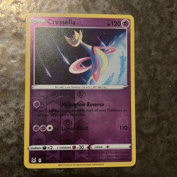 Ett Pokémonkort av Cresselia. Kortet har attackerna 'Healing Dance' och 'Crescent Purge'.