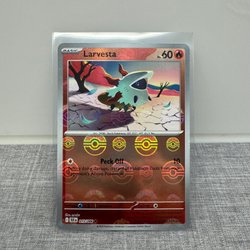 Säljer ett Pokémonkort av Larvesta. Kortet är av typen Basic och har 70 HP. Den har attackerna Ram och Steady Firebreathing. Kortet har svaghet mot vatten och retreat kostar två.