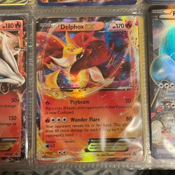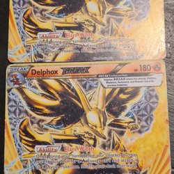 Säljer två Pokémonkort med karaktären Delphox V. 027/196 samt 017/100