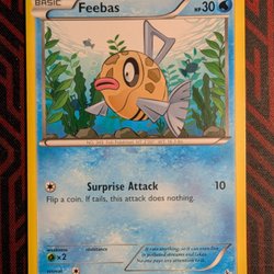 Pokemonkort föreställande Feebas, nummer 22/106. Kortet är från 2014.