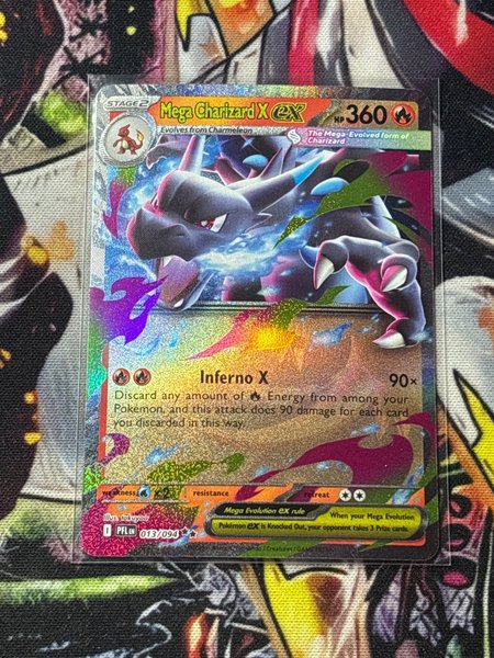 Pokémonkort från serien med Mega Charizard X EX. Kortet är Inferno X 90x.