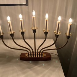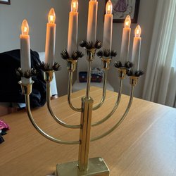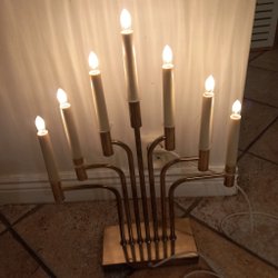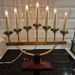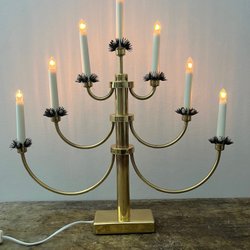 Klassisk adventsljusstake i mässingsfärg med sju ljus.