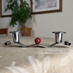 Retro ljusstake i rödmålat trä. Passar till 2 kronljus.