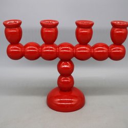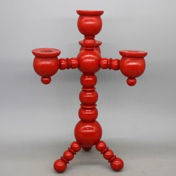 Retro härlig röd kulljusstake i bemålat trä , Julbordet , Advent , 1900-tal