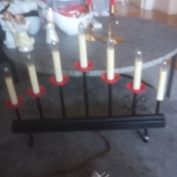 En charmig röd ljusstake i trä, formad som en figur med plats för flera ljus. Den är dekorerad med blommönster, vilket ger den en unik och dekorativ stil. Perfekt för att skapa en mysig atmosfär i hemmet.