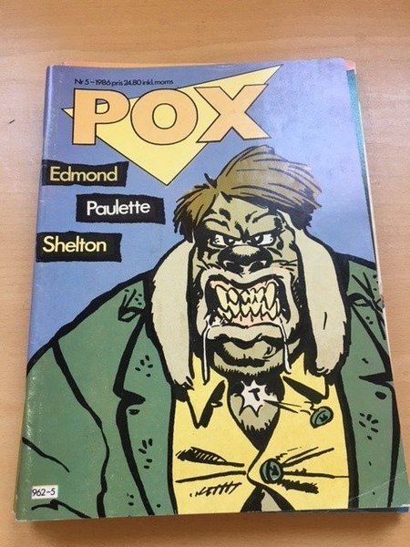 Oläst men inte NM. Serietidningen POX, nummer 5 från 1986. Priset var 24.80 kr inklusive moms. Medverkande är Edmond, Paulette och Shelton. Nere till vänster står 962-5.