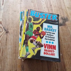 Ett parti med blandade serietidningar. Innehåller tidningar som James Bond, Buster, Knasen, Magnum och Serie Special.