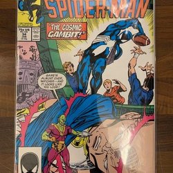"Beware the Stalker from the Stars!" Story by Larry Leiber. Art by Larry Leiber and Vince Colletta. Cover by Larry Leiber and Al Milgrom. The Amazing Spider-Man finds himself in the middle of a battle between two powerful aliens! The bad alien, Xanja, is attempting to recover an awesome cosmic weapon, the cosmultigizer, that accidentally crash landed on Earth. The good alien, Vaalu, is trying to prevent the weapon from falling into evil hands. (Note: The letters page contains a statement of ownership: average print run 460,676; average paid circulation 264,225.)