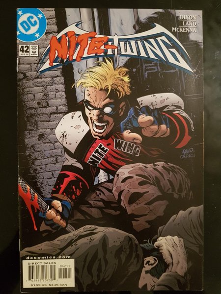 WRITTEN BY CHUCK DIXON; ART BY GREG LAND, PATRICK ZIRCHER AND DREW GERACI; COVER BY LAND AND GERACI. Nite-Wing reaches new heights of madness as he takes his personal battle against Chief Redhorn's enemies to new lows. Meanwhile, on the job front, Dick is no closer to a position on the Bludhaven PD...and he's peeved! So when Nightwing and Nite-wing finally cross paths again, the repercussions are explosive!