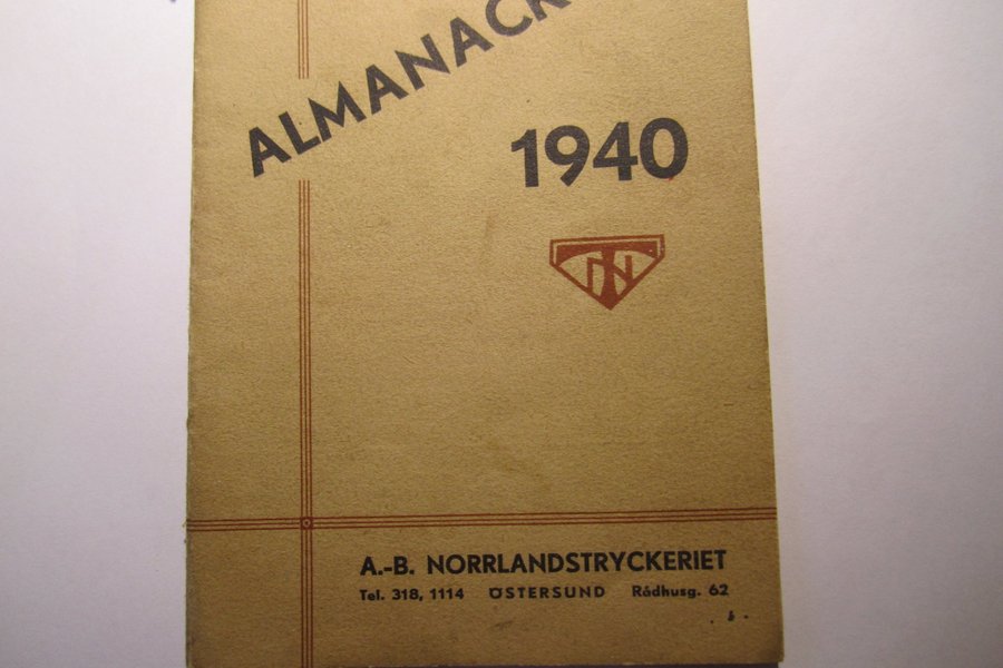 En almanacka från 1940, utgiven av A.-B. Norrlandstryckeriet i Östersund.