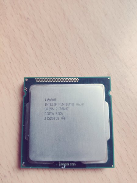 Intel Pentium G630 processor med en klockfrekvens på 2.70GHz. Tillverkad i Costa Rica. Modellnummer SR05S och serienummer 3152D652.
