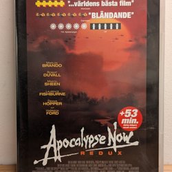 Apocalypse Now Redux på DVD. En episk film av Francis Ford Coppola med Marlon Brando, Robert Duvall och Martin Sheen. Filmen utspelar sig under Vietnamkriget och handlar om en resa uppför floden till Kambodja för att eliminera en amerikansk överste.