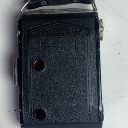Kamera med Zeiss Ikon-märkning. Objektivet är ett Carl Zeiss Tessar 2,8/50 med serienummer 3123103. Kameran har inställningar för bländare, slutartid och fokus.