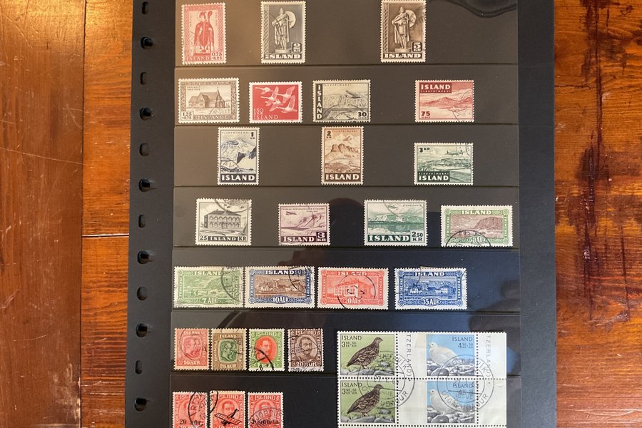 Ett visirblad med stämplade spännande Isländska frimärken
