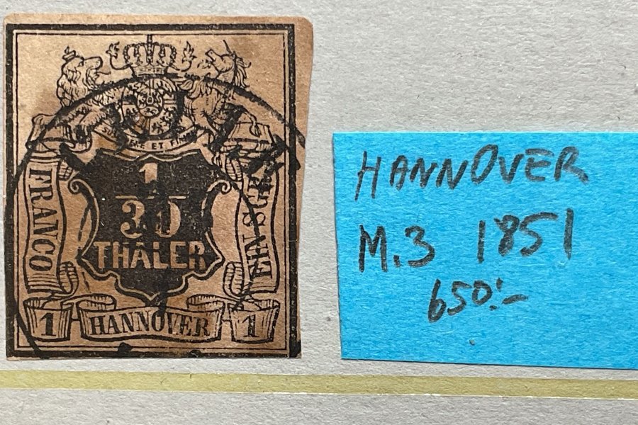 Stämplat frimärke från Hannover 1851 M.3 (650:-)