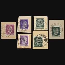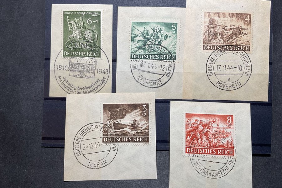Fem st Tyska riket frimärken på klipp