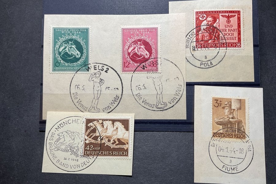 Fyra st Tyska riket frimärken på klipp