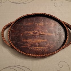 Denna träpiedestal har en snidad design med en vriden pelare och dekorativa repdetaljer. Den är utrustad med en plastfat.