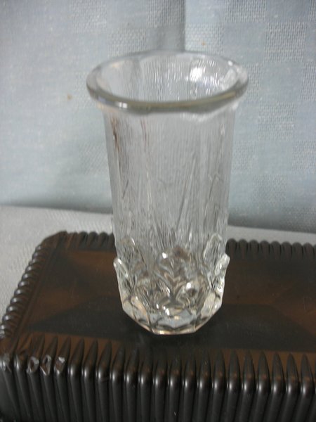 Vasen är stilren och dekorativ pressglasvas med vackra detaljer.