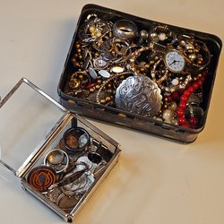 Massor med olika smycken från dödsbo allt från ringar halsband broscher mm allt är jätte fint