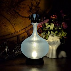 Potion Bottle Nightlight är 3D-printad och kommer i flera delar; ett LED-ljus, en flaska samt en avtagbar botten där ljuset står på.