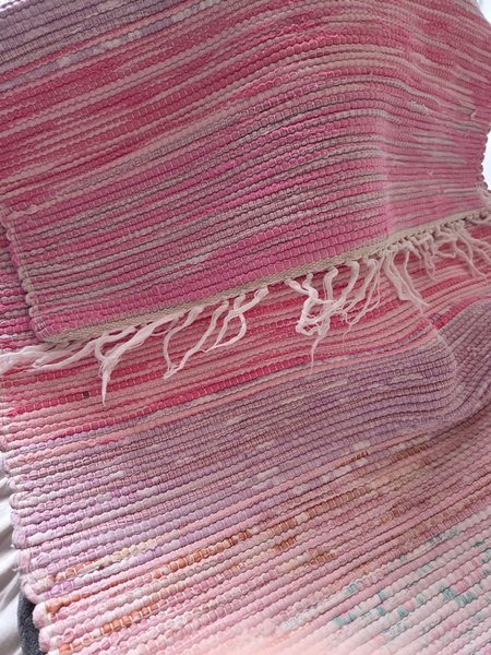 En fin rosa trasmatta som passar perfekt i hallen eller köket. Mattan är vävd och har en dekorativ frans.